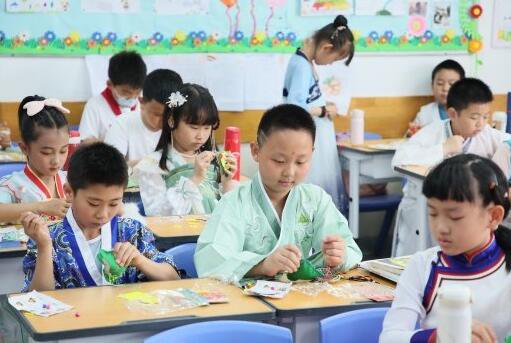 製造非遺+傳統美食 「一起成長」向外延伸在農科院附小的四個校區,學生們圍坐在一起,有的製造臉譜、有的製造團扇,還有的製造風箏、毛猴等被評為非物質文明遺產的手藝項目。
